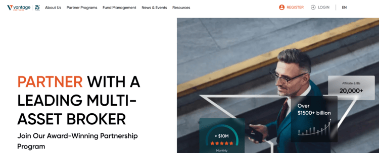 There are over 20,000 active affiliates and partners worldwide, and Vantage has paid out more than $10 million in monthly commissions.