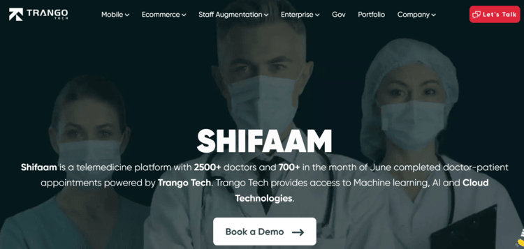 Shifaam is a telemedicine platform with over 2500 doctors that’s powered by Trango Tech. Trango provides access to the critical machine learning, AI and cloud tech behind the platform.