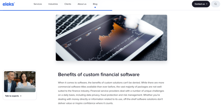 ELEKS offers a wide range of services to help businesses innovate, optimize operations, and drive digital growth across industries such as finance, healthcare, retail, and logistics.