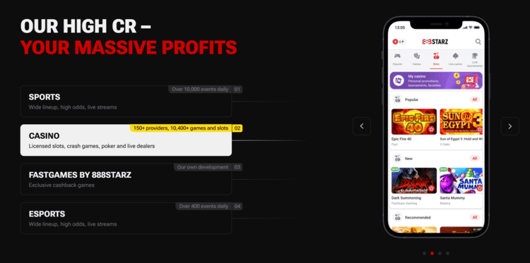 888Starz Partners is the affiliate program associated with 888Starz, and it’s designed for individuals and businesses interested in promoting the platform’s new (and upcoming) services.