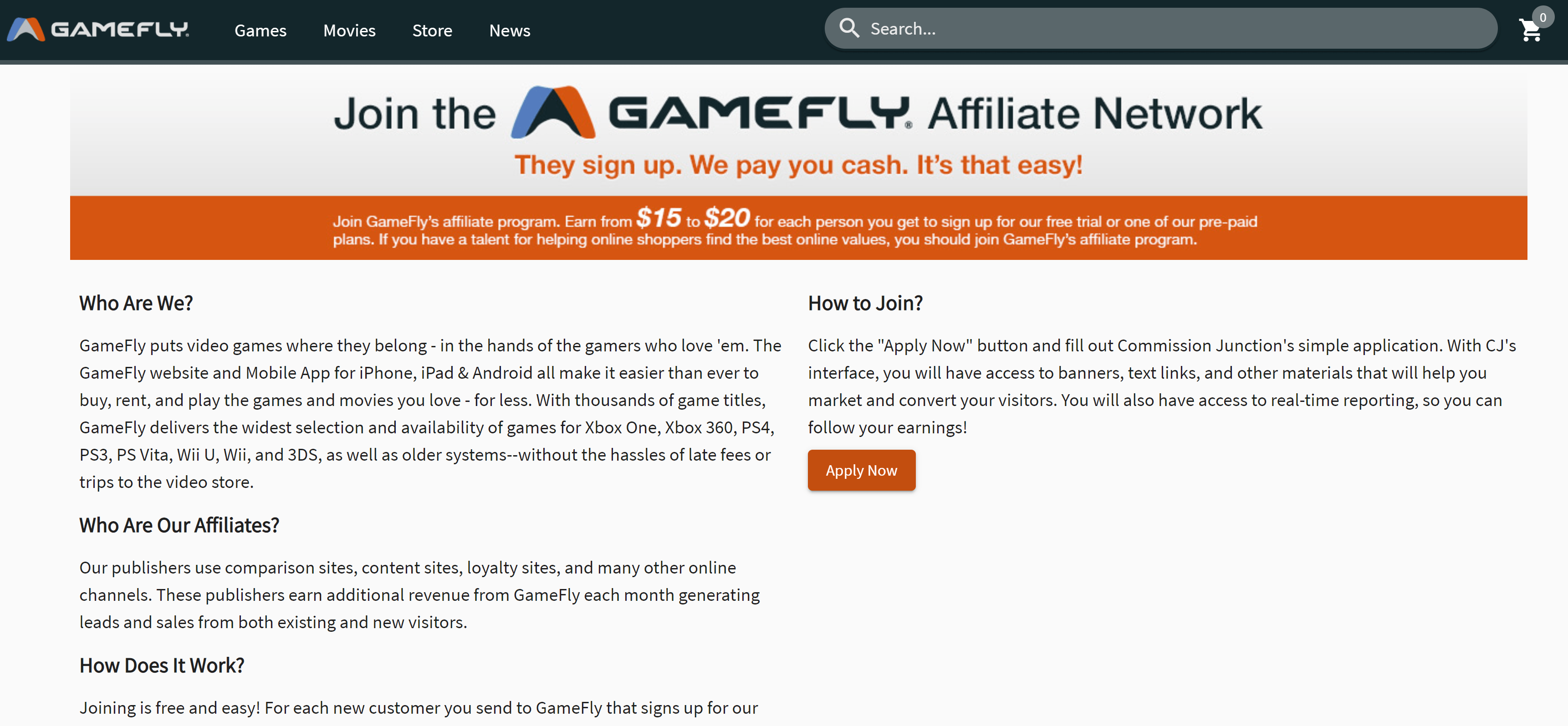 | GameFly | Dedicated affiliate program | 5% on the sale of new console games |